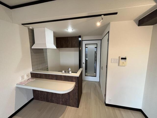 室内の証明は調光付きでお洒落なお部屋を演出できますよ!飲み好きにはもってこいの物件です。
